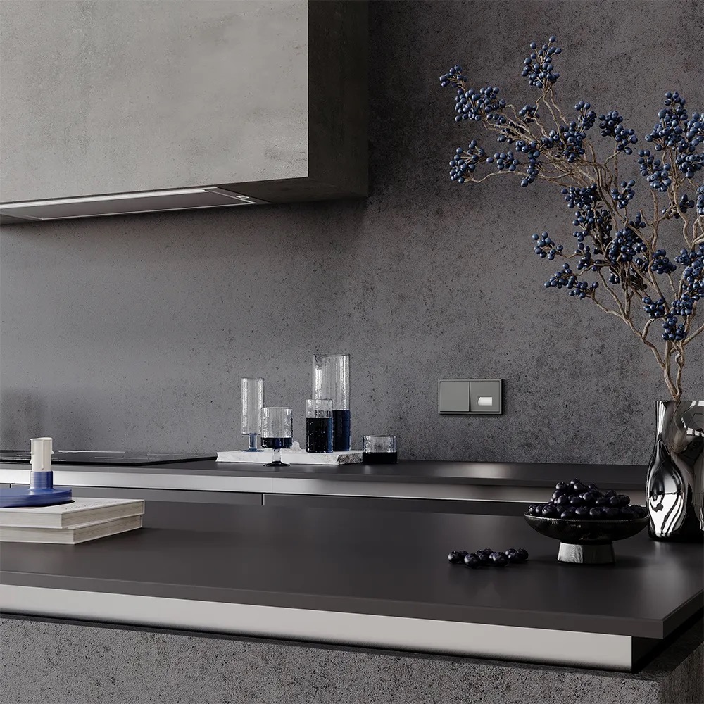 Сдержанный металлический серый с холодным подтоном. Подчёркивает технологичность пространства и гармонично сочетается со стальной фурнитурой, бытовой техникой и элементами хай-тек.
